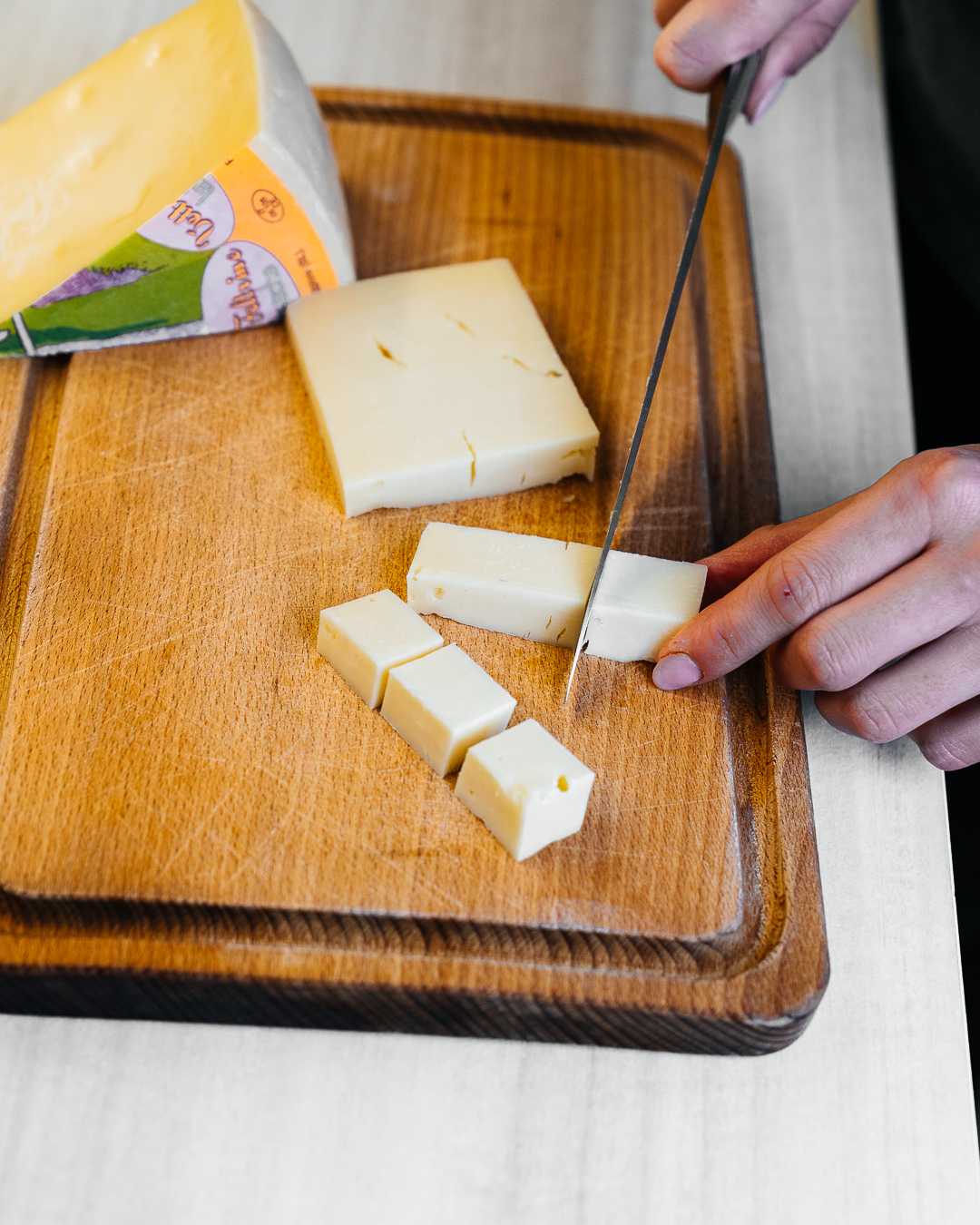 Nel frattempo, tagliate circa 15-16 cubetti di formaggio.