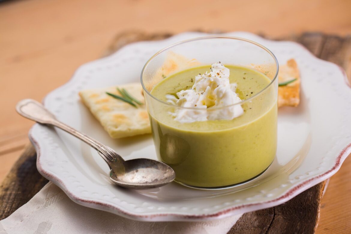 Cappuccino di piselli con Stracchino Lattebusche e crackers di sfoglia