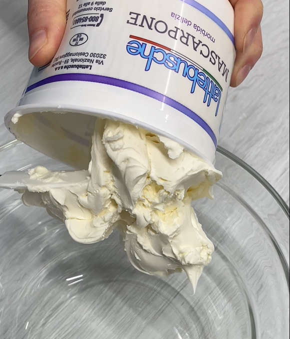 Intanto, con le fruste elettriche, montare in una ciotola il mascarpone con la panna ben fredda.