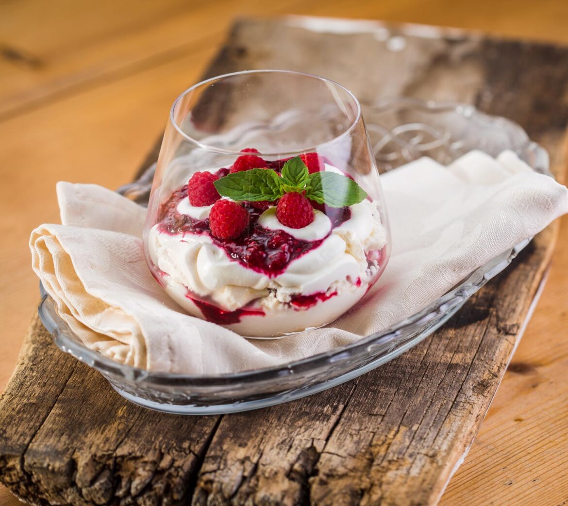 Terminate con ciuffi di crema, lamponi freschi e qualche fogliolina di menta.