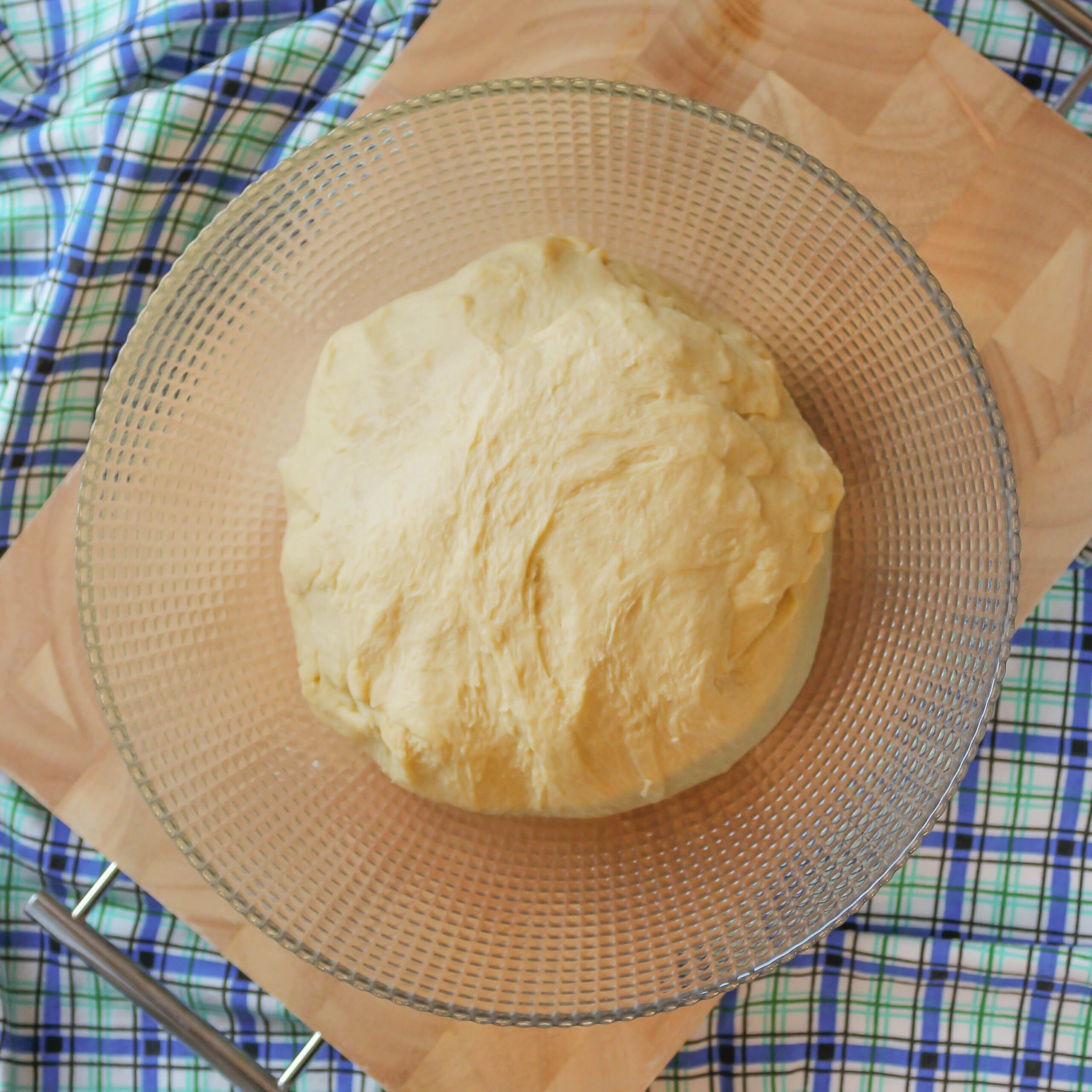 Avvia l’impastatrice e fai lavorare il tutto fino ad ottenere una palla liscia (ci vorranno circa 15 minuti). Puoi naturalmente lavorare il tutto anche a mano se non hai un’impastatrice!