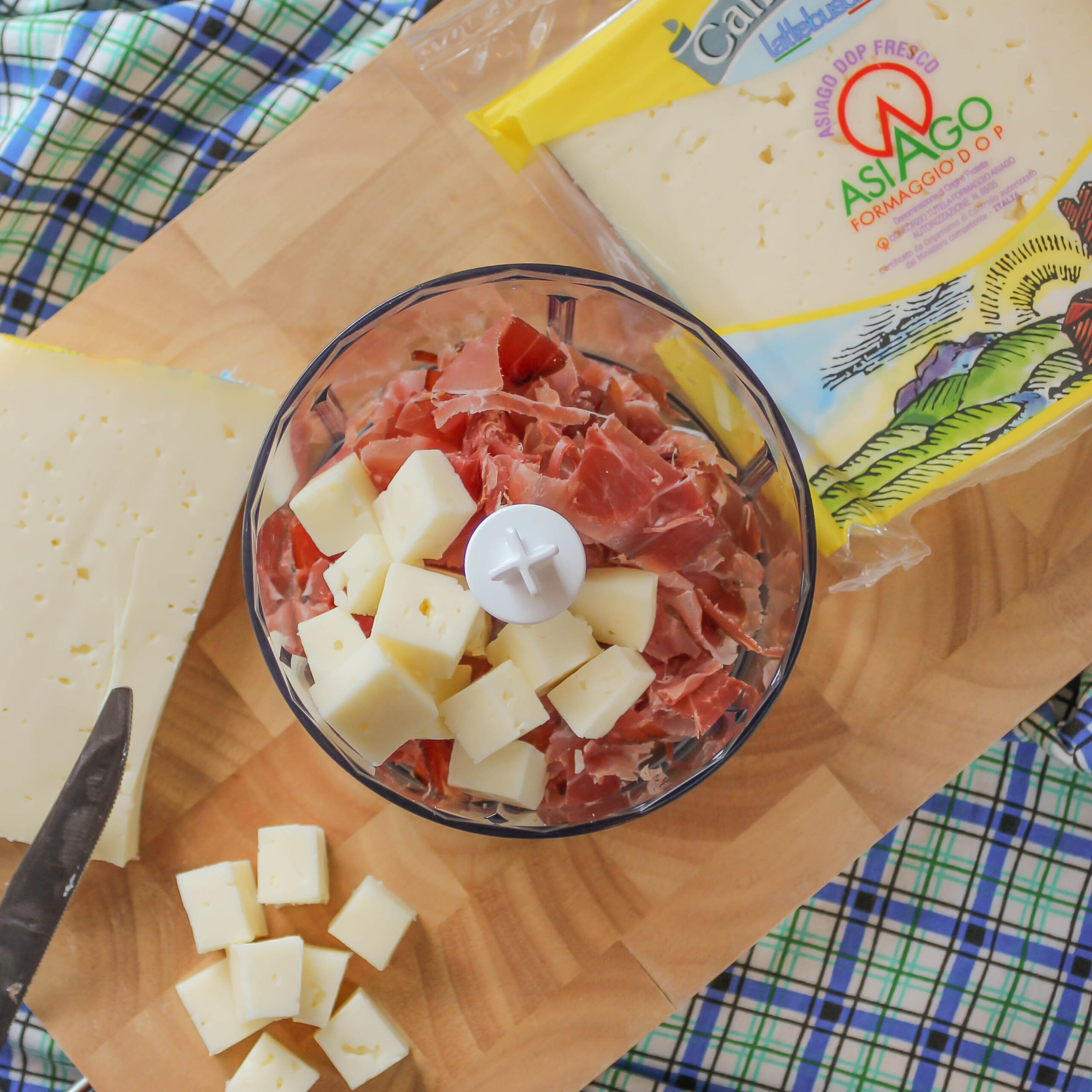 Metti nel frullatore (o se preferisci trita al coltello) lo speck insieme al formaggio Asiago DOP Lattebusche.