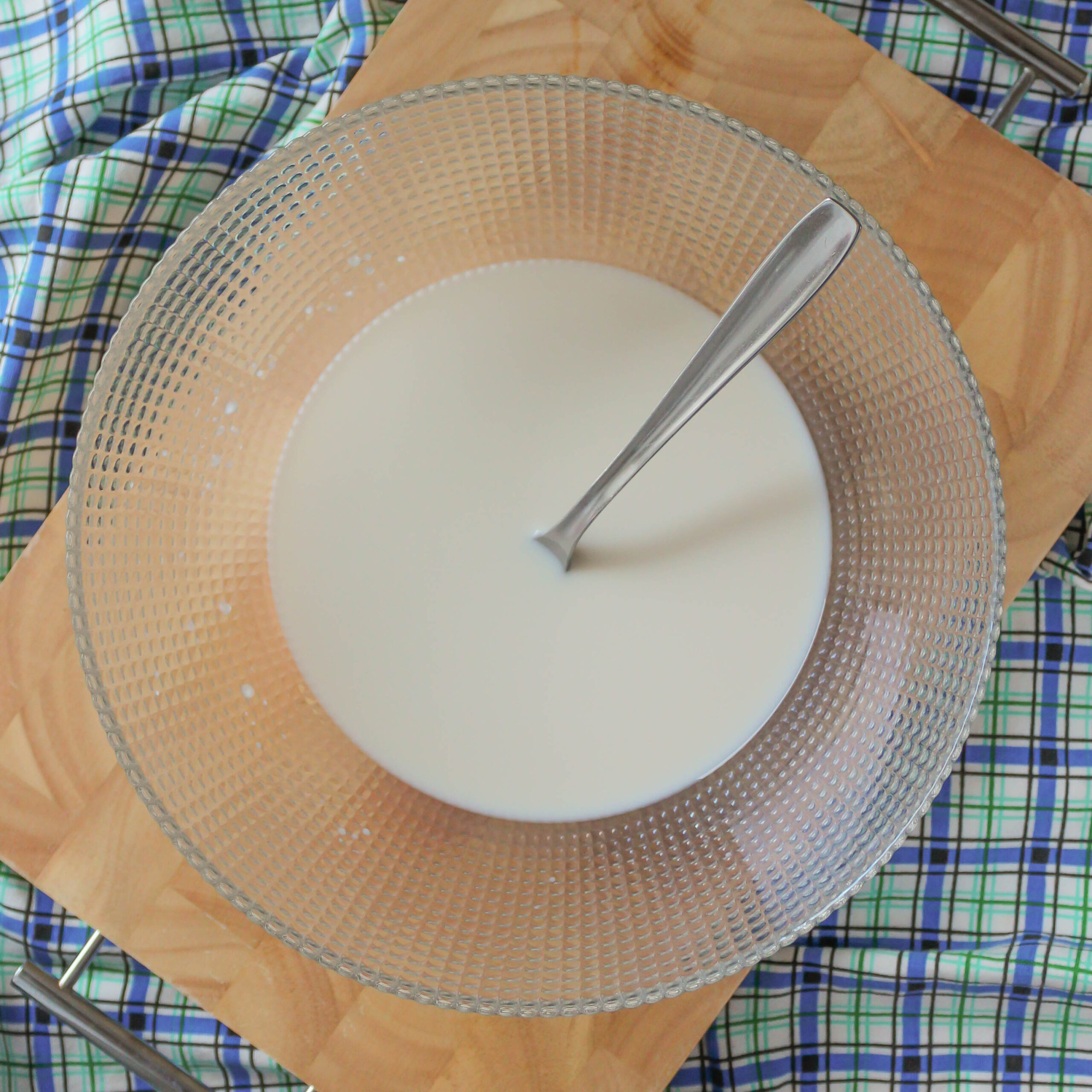 Fai sciogliere il cubetto di lievito nel latte tiepido insieme allo zucchero. Mescolalo bene fino al completo scioglimento.
