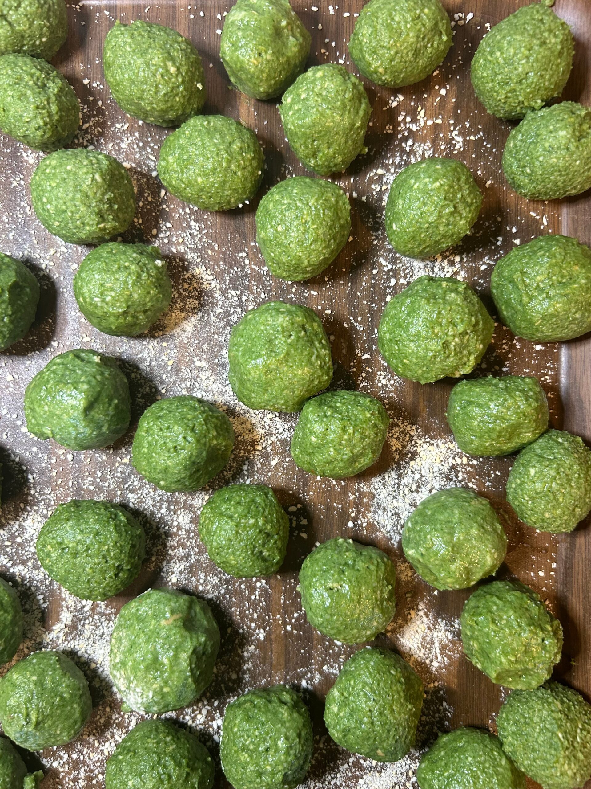 Inumidire le mani e formare delle palline di circa 3 centimetri; cuocerle in abbondante acqua salata finché verranno a galla.