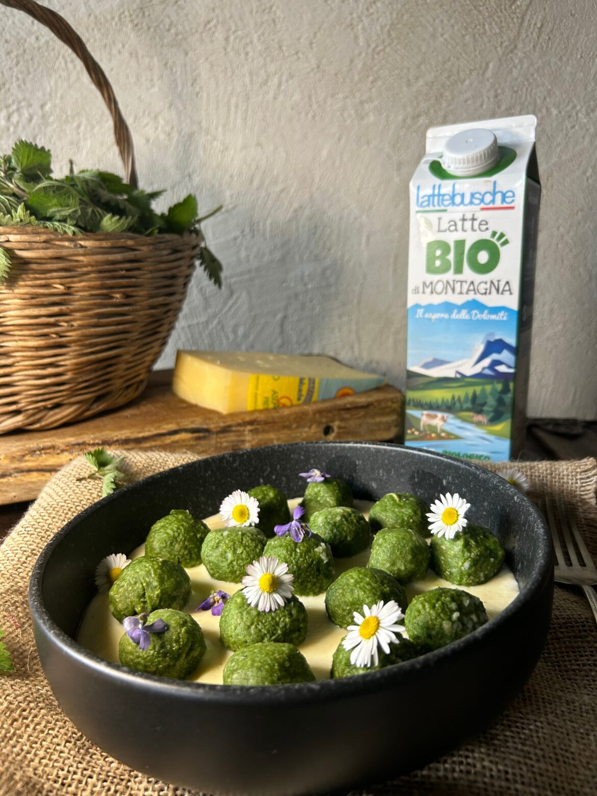 Un’ottima soluzione anti spreco per trasformare alcuni panini in un primo piatto appetitoso, da condire a vostro piacimento: la nostra creator Gloria Tollardo ha scelto un’ottima fonduta di Asiago DOP fresco dal sapore delicato e gradevole, dall’aroma che richiama sentori di yogurt e burro, arricchito dall’aggiunta del Latte Bio di Montagna proveniente da aziende agricole dei Soci Allevatori della Cooperativa situate in comuni montani dell’area dolomitica. Un’alternativa? Burro ottenuto dalla crema del latte con la sola aggiunta di fermenti lattici selezionati, fuso con le erbe aromatiche.
