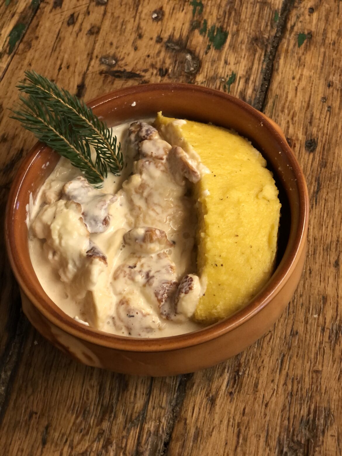 Poco prima della bollitura salare e versare a pioggia la farina di mais Sponcio mescolando bene con una frusta per evitare grumi