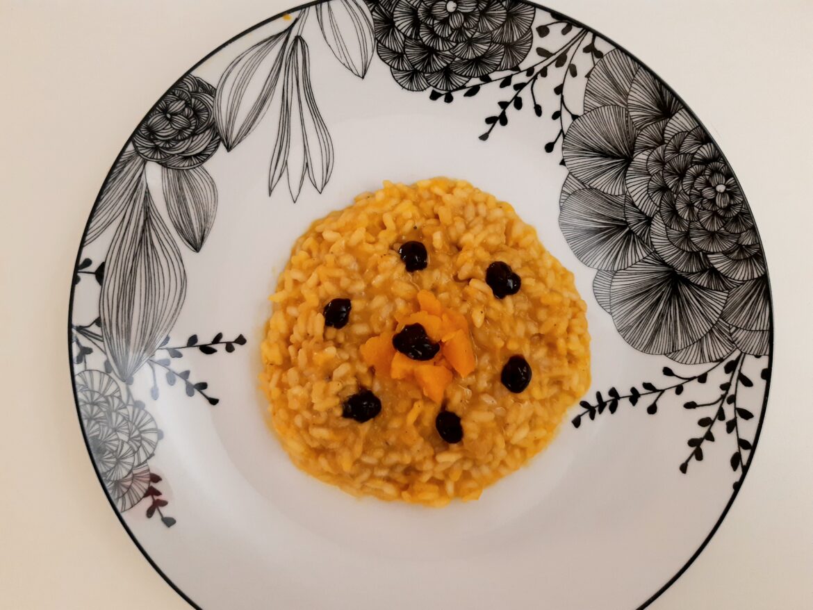Risotto di zucca mantecato al Piave DOP Vecchio Selezione Oro con riduzione di liquirizia